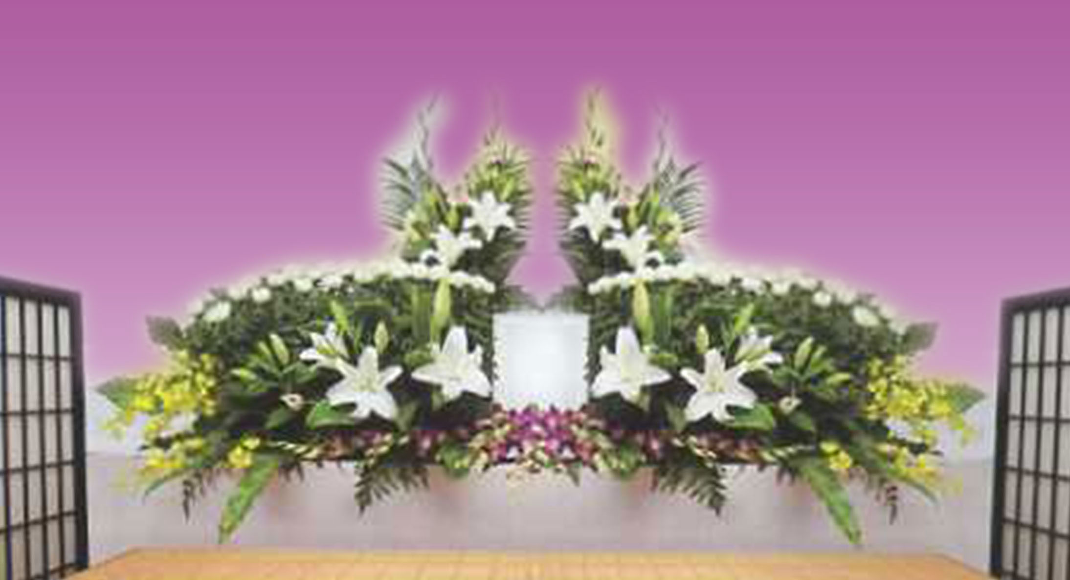 オリジナルデラックス生花祭壇をご用意いたします。故人様のご性別、ご年齢等をご参考にいたしまして、季節のお花で、一つだけのオリジナル祭壇をおつくりいたします。